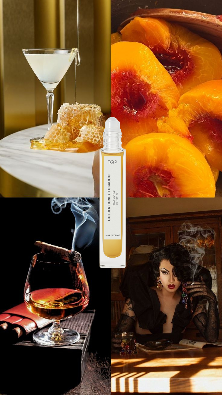 Golden Honey Tobacco er en rig, vanedannende duft, hvor sød honning og gyldne tobaksblade mødes i perfekt harmoni. Duften åbner med en varm, frugtagtig sødme og udvikler sig til et dybt, røget hjerte fyldt med tørret frugt og ravfarvet varme. Intens, overdådig og fuld af karakter – en duft, der bliver hængende som et fløjlsspor af luksus.