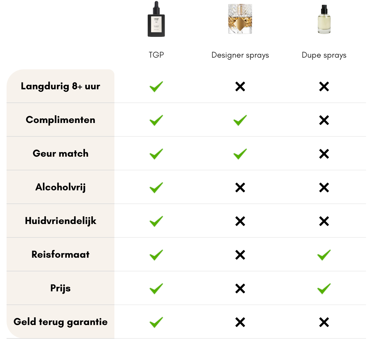 Olie parfum vergeleken met designer spray parfum en dupe spray parfum